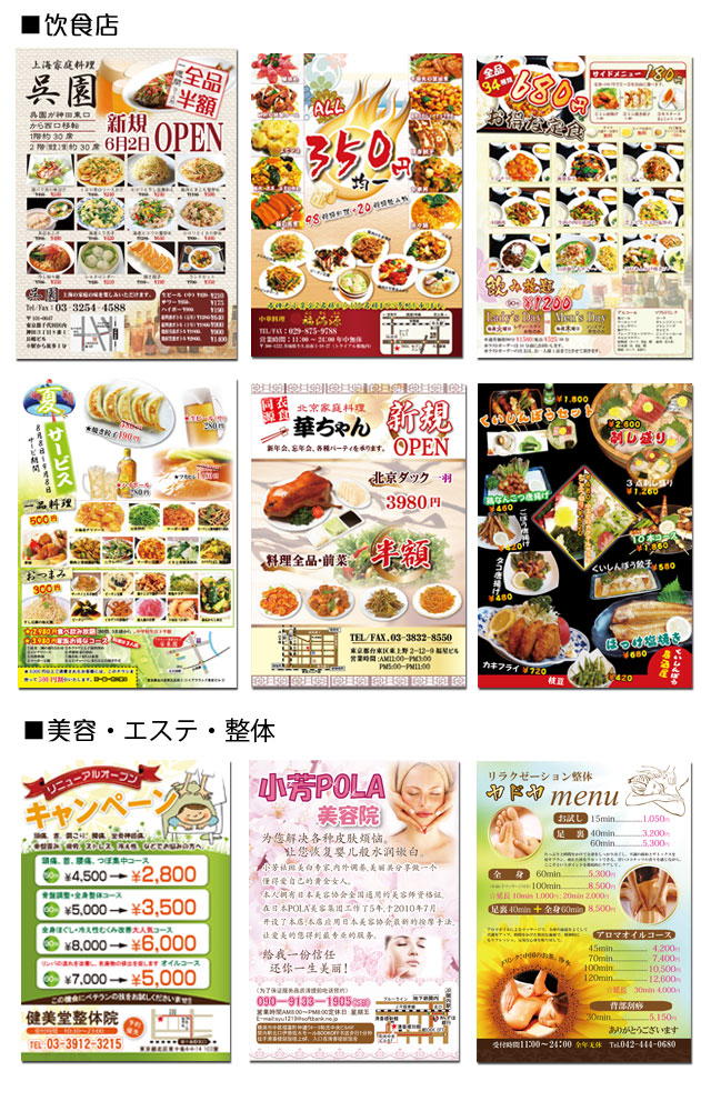 ※掲載の値段は一部例です、その他サイズ、部数等は、お気軽に問い合わせ下さい。 |