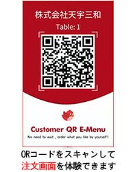 | 注文機能 | 簡単にご自身のスマホでQRコードを読み込むだけで注文をすることができます。 特別なアプリのダウンロードは必要ありません。 |